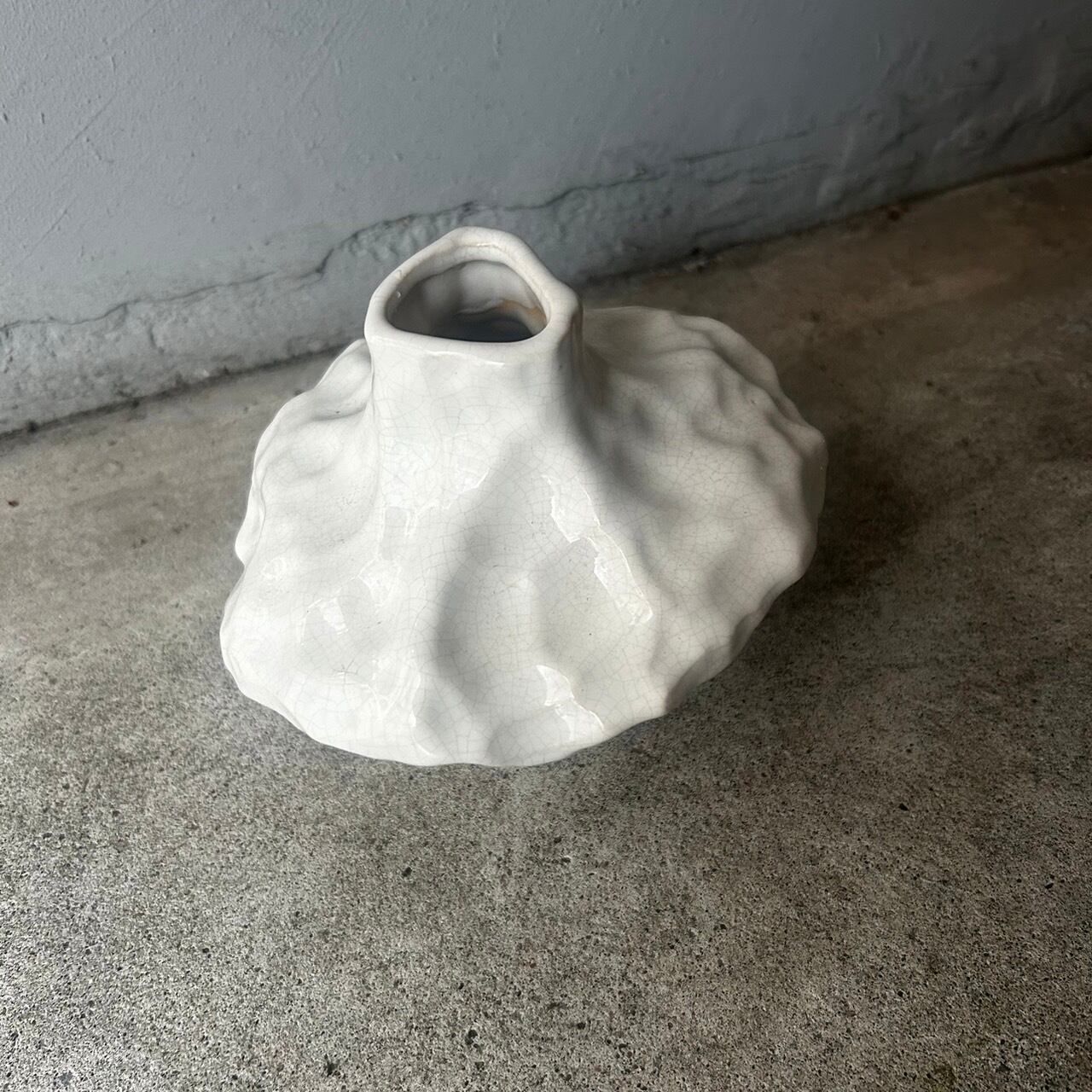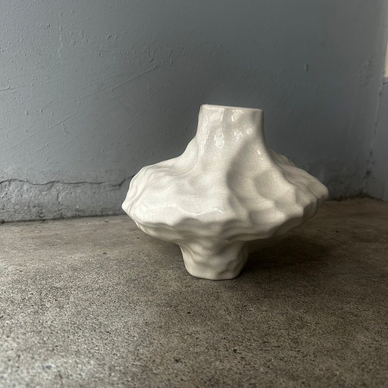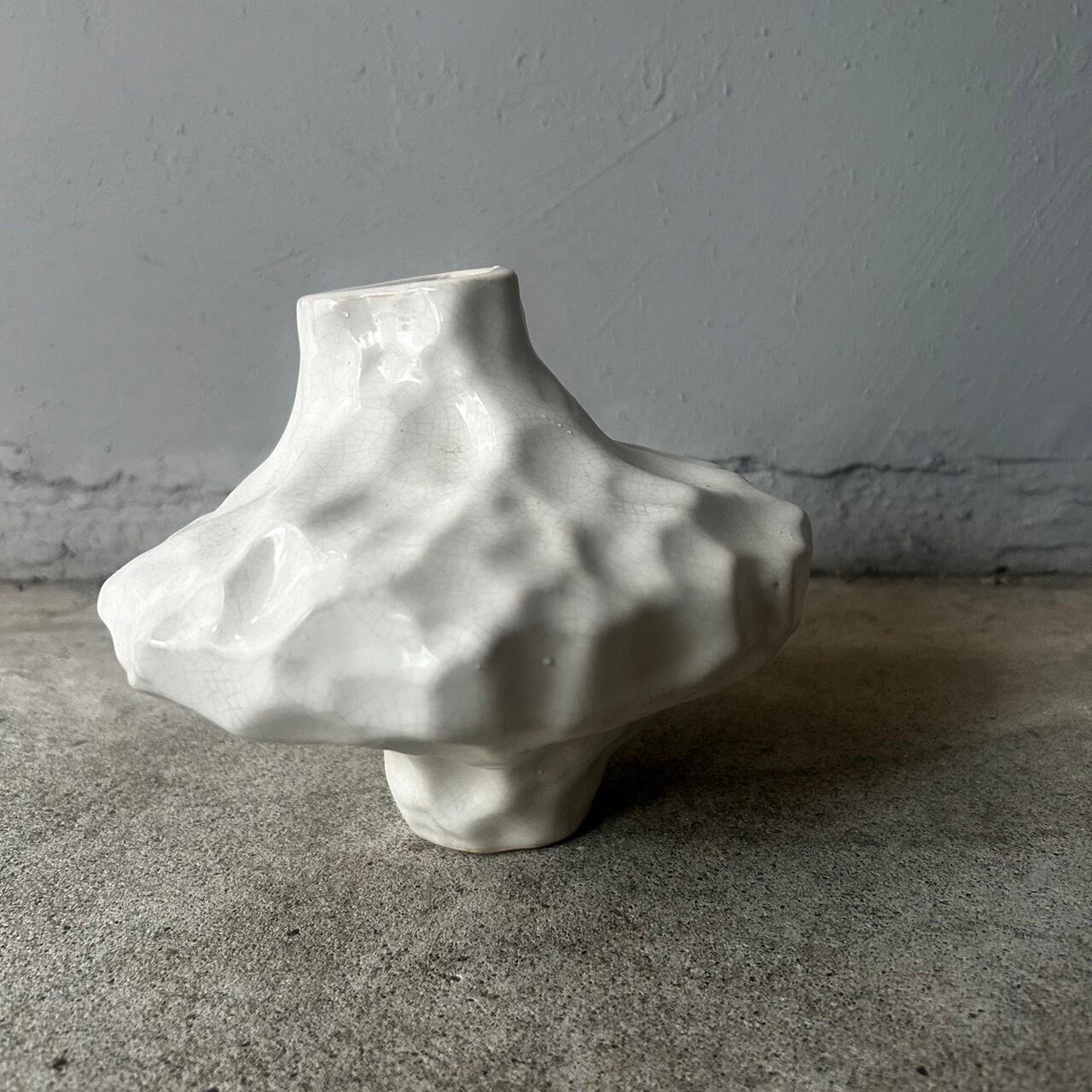 有機的で立体感のあるフォルムが特徴的な、現代的セラミック花瓶。